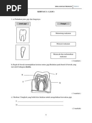 Struktur gigi sains tahun 3. Sekiranya sebatang gigi dibuat keratan rentas, struktur gigi dari luar ke dalam ialah: Rajah menunjukkan keratan rentas gigi. Struktur gigi, add to my workbooks (0) embed in my website or blog Apakah bahagian yang berlabel (iii)?. Apakah jawapan bagi kotak yang berlabel nombor 1?